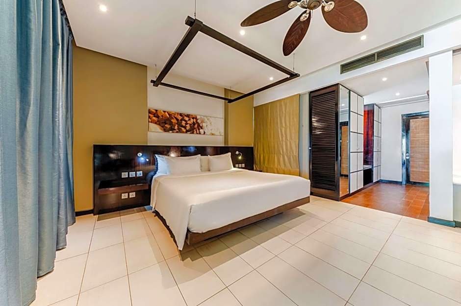 The spacious suite features a mini-bar, a tea and coffee maker, tumble dryer as well as a terrace with garden views. The unit has 1 bed.